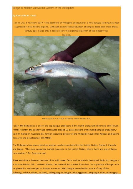 Bangus Or Milkfish Cultivation Systems In The Philippines