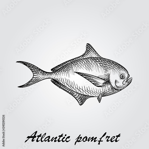 Hand Drawn Atlantic Pomfret Sketch Symbol Isolated On White Background Vector Of Fishing Elements In Trendy Style Sketch Of Saltwater Sea Or Freshwater River Fish Species Flounder Stock Vector Adobe Stock